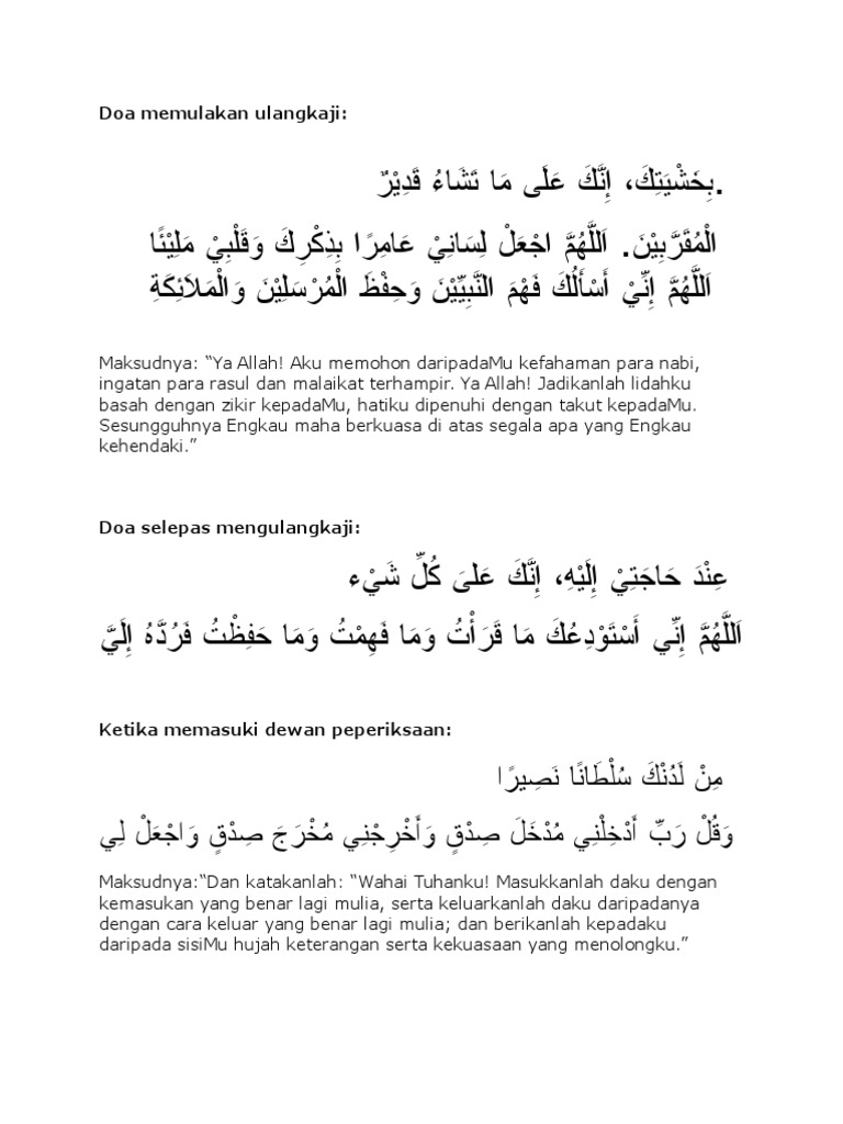 Doa adalah harapan hajat kita terhadap Pencipta. Solat sunat 2 rakaat sebelum mengulangkaji pelajaran. Ya Tuhan kami Pada hari ini kami menadah tangan memohon restu perkenan daripadaMu jadikanlah hari ini hari kebaikan bagi kami hari kesinambungan untuk kami mengejar dan memperjuangkan cita-cita murni.