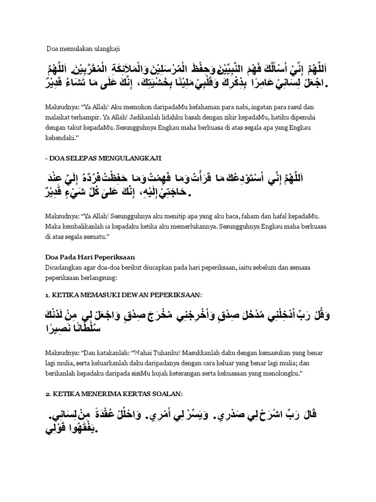 Doa Memulakan Ulangkaji م إهم ل إللاي أ ن يإك للمأس أ أمه أ فن ي أي. Doa Memulakan Ulangkaji اللهم إني أسألك فهم النبيين وحفظ المرسلين والملائكة المقربين. Tidak lama lagi calon Sijil Pelajaran Malaysia SPM dan Sijil Tinggi Pelajaran Malaysia STPM akan memulakan perjuangan mereka dalam peperiksaan awam yang menjadi penentu kepada hala tuju pengajian mereka pada masa akan datang.