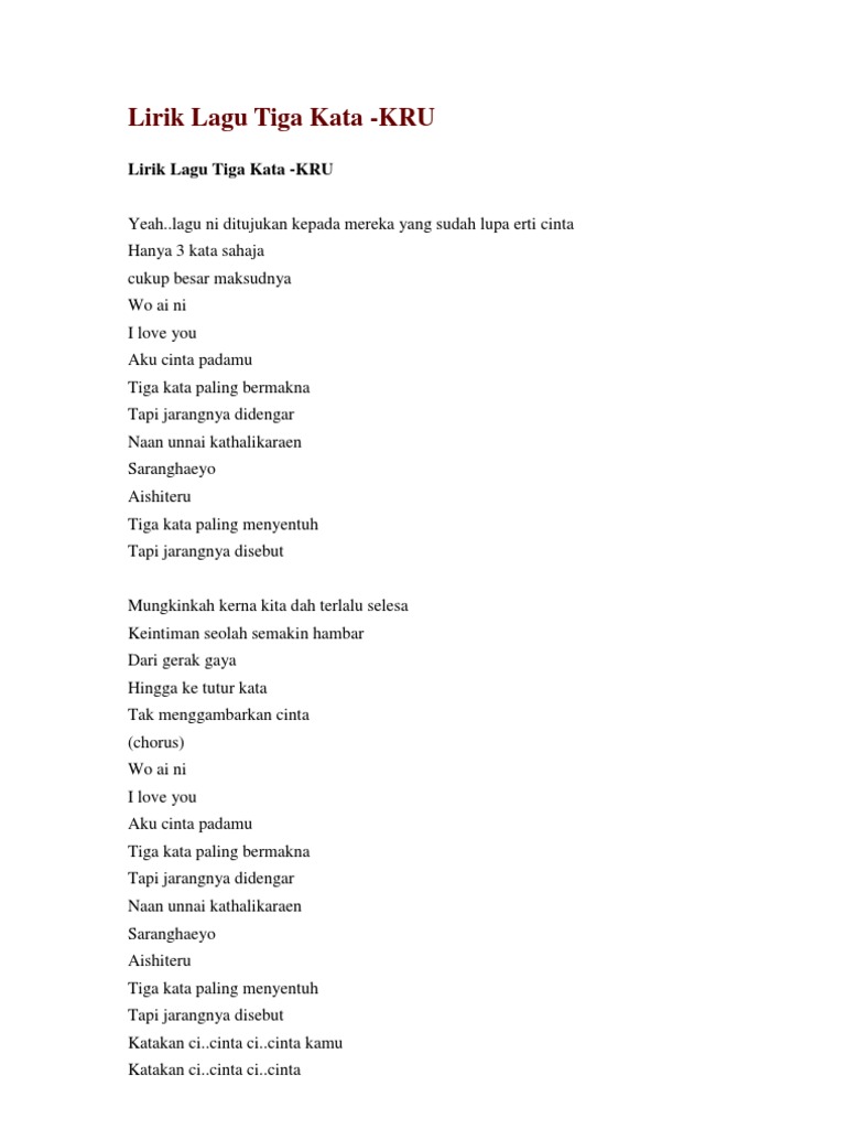 Lagu Kru 3 Kata Ditulis Julio Petersen Sabtu, 30 April 2022 Tulis Komentar Edit Tiga Kata Lyrics Kru Kkbox Lirik Lagu Tiga Kata Pdf Lirik Kru Tiga Kata Song Lyrics Tiga Kata Kru Lirik Youtube Aku Dan Sesuatu Lirik Lagu Kru Tiga Kata Bagikan Artikel ini